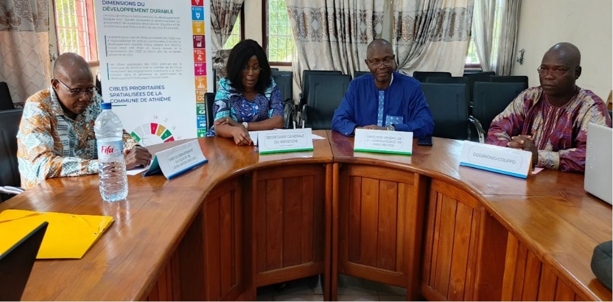 L’ouverture de l’atelier a été marquée par quatre (04) allocutions : le mot de bienvenue du Directeur Départemental du Développement du Mono-Couffo, le mot du Chef du Département du Suivi et de l’Evaluation des ODD, le mot du Directeur Général de la Coordination et du Suivi des ODD et l’allocution officielle d’ouverture des travaux par la Secrétaire Générale du Ministère du Développement et de la Coordination de l’Action Gouvernementale.