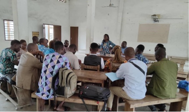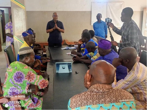 Étape Sakété avec les hommes en présence du Directeur Général des politiques de Développement