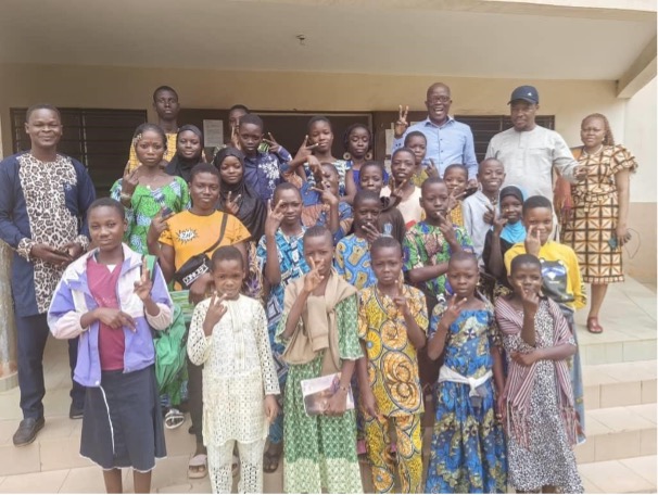 Étape de Tchaourou avec les enfants en présence du Directeur de la Prospective et de la Veille Stratégique