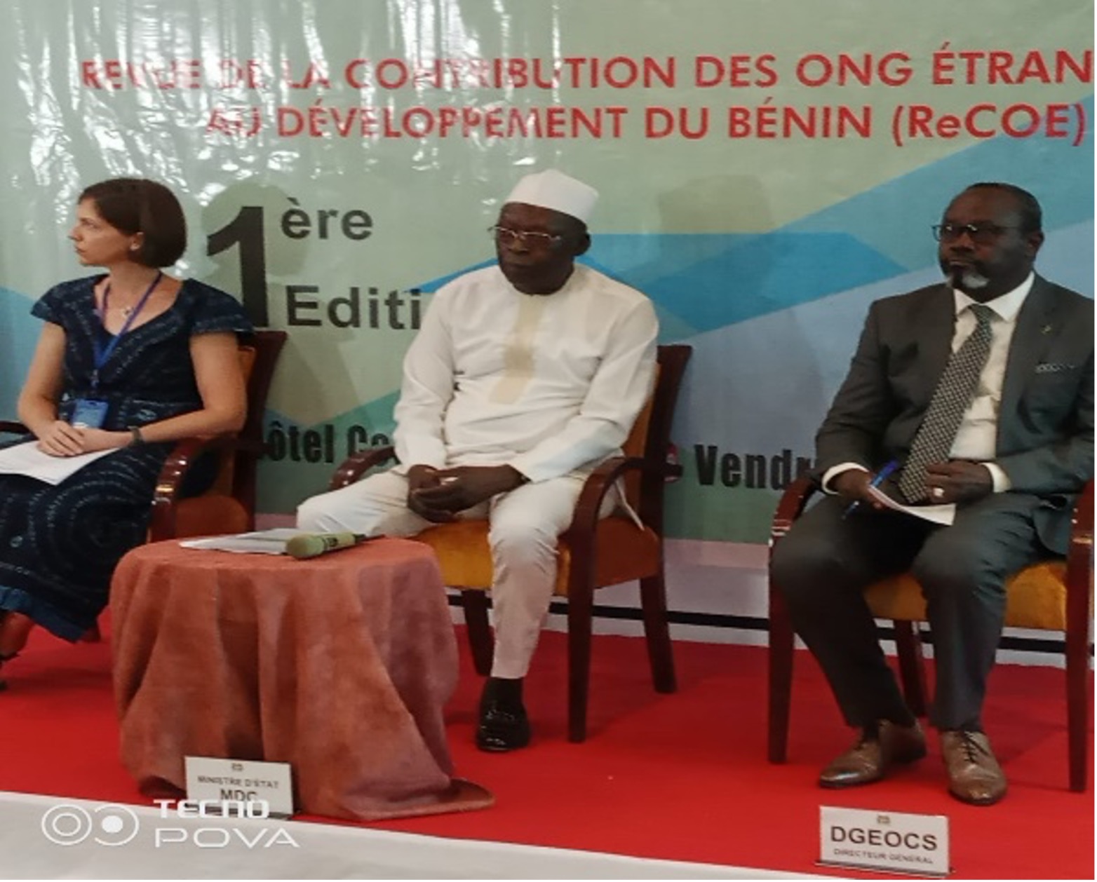 Le Vendredi 13 Octobre 2023 a eu lieu, à l’ l’Hôtel Azalai de Cotonou, la première édition de la Revue de la Contribution des ONG Étrangères au processus de développement du Bénin (ReCOE, 1ère édition). Cette première édition, dont les travaux ont été lancés par le Ministre d’Etat, Abdoulaye BIO TCHANE, a réuni divers experts, membres du comité interministériel d’étude des dossiers de demande d’accord de siège, des représentants des ONG étrangères et locales puis des membres de la société civile. Trois (03) panels ont meublé les activités de la journée. Il s’agit de : 1- les ONG internationales et l'éducation au Bénin ; 2- les ONG internationales et la lutte contre la pauvreté au Bénin et 3- le rôle des ONG internationales dans la promotion de la femme béninoise.